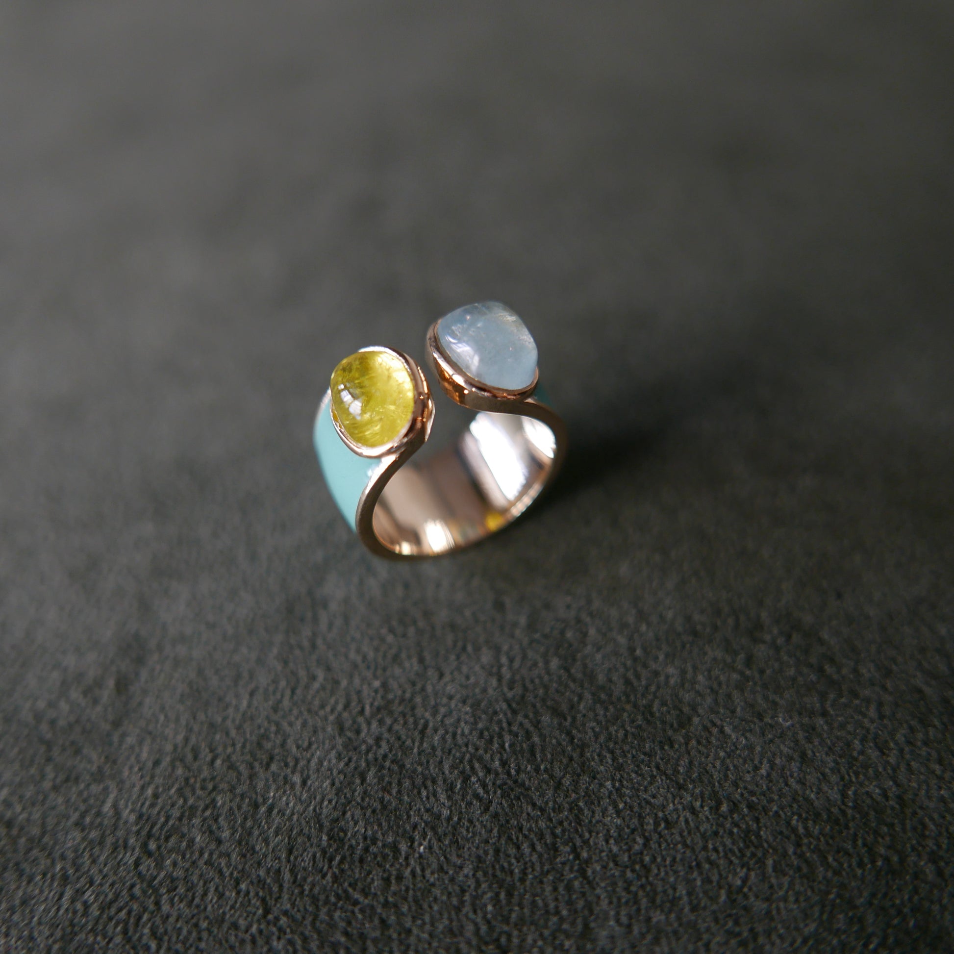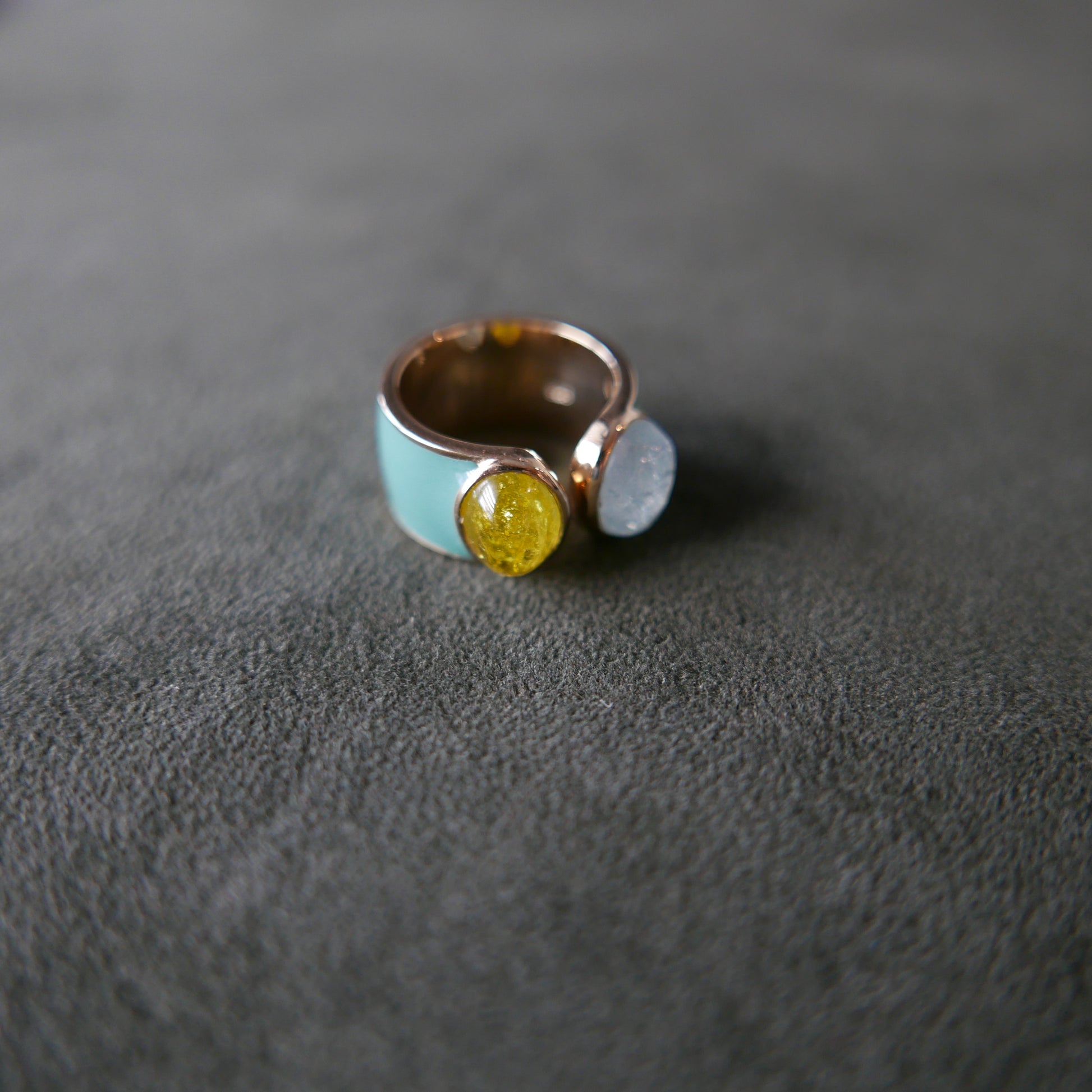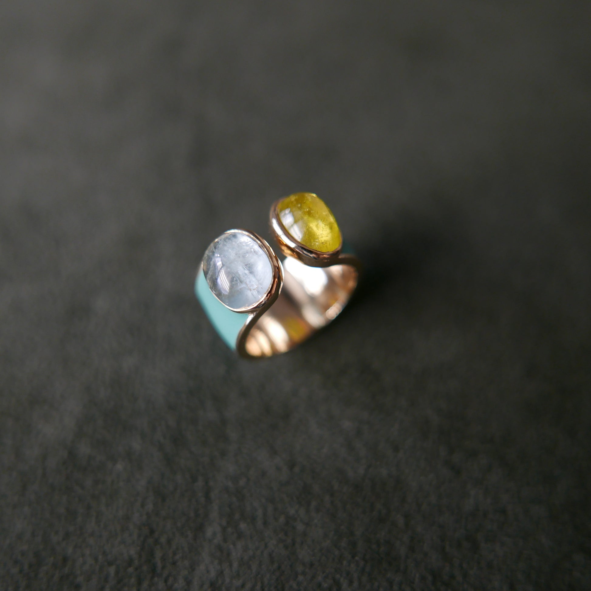 Double tourmaline in ocean blue enamel
