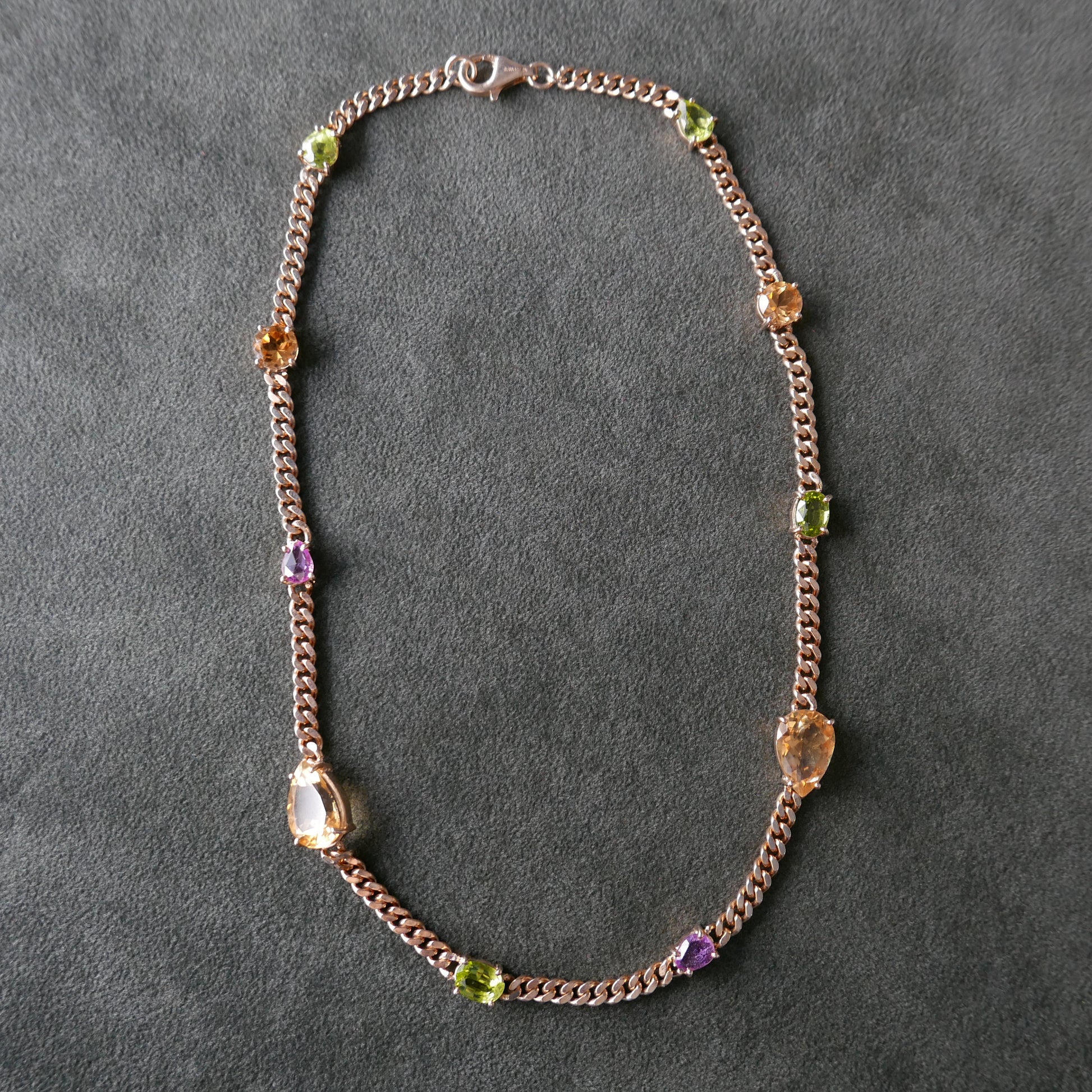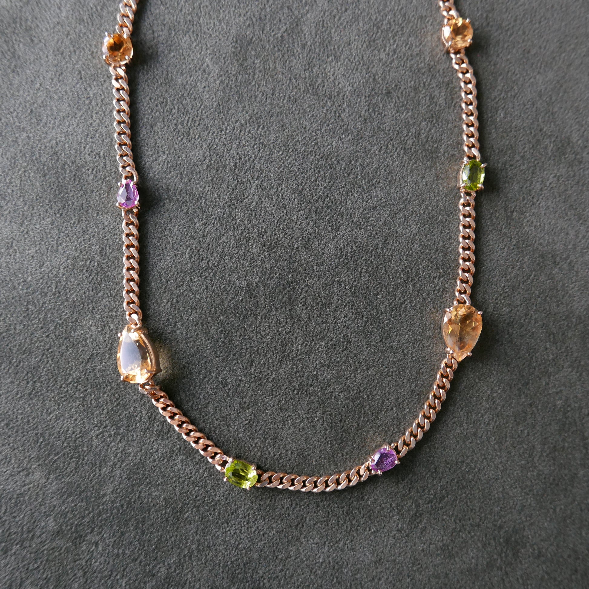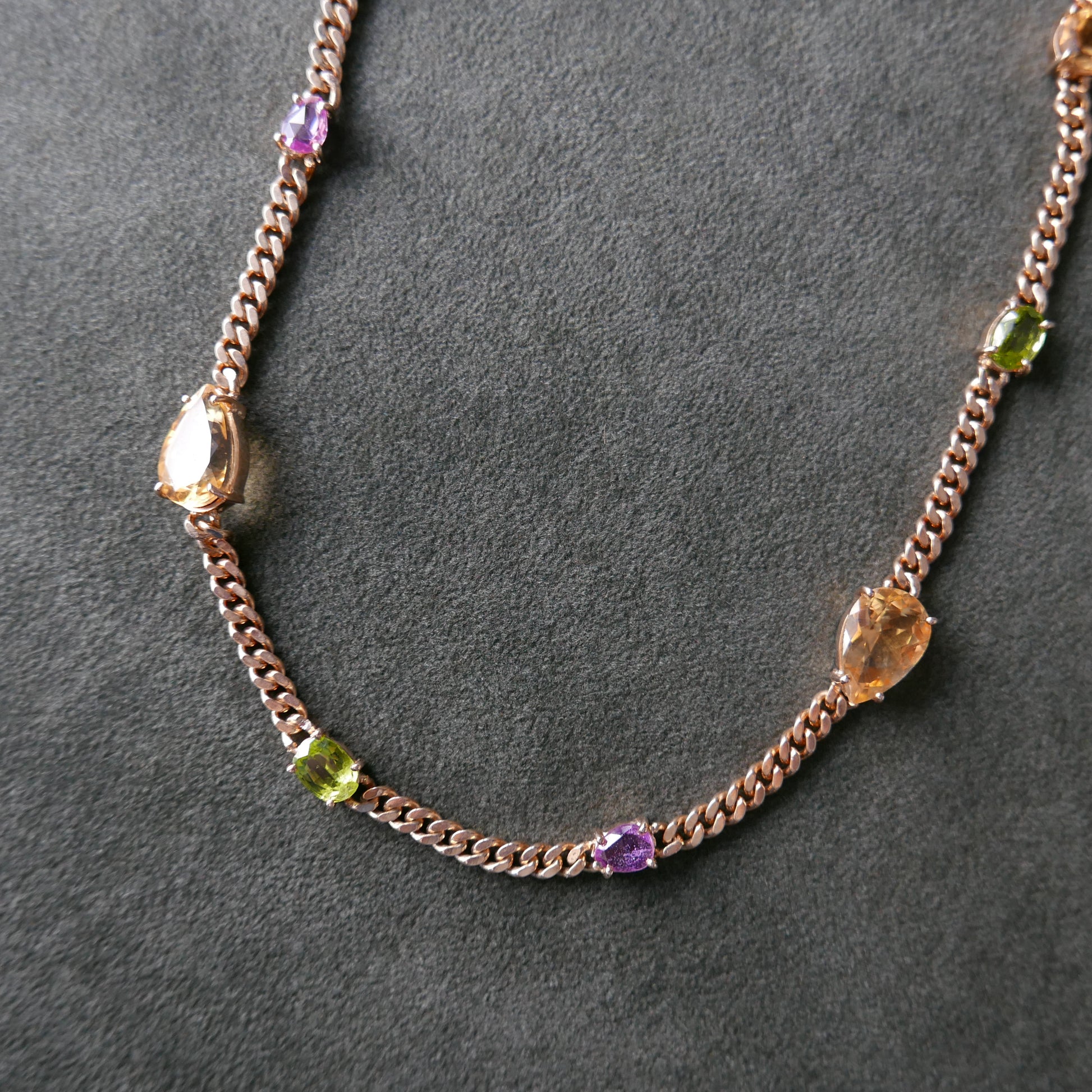 Citrine, Peridot and sapphire in chain necklace